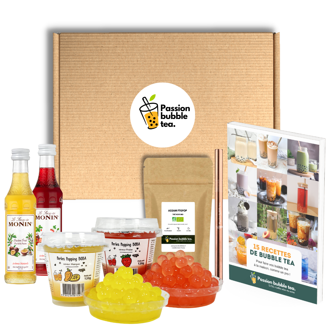 Offrez une expérience bubble tea complète à la maison avec notre kit Passion Bubble Tea. Parfait pour une idée cadeau originale, une activité conviviale ou un moment de plaisir personnel, il permet de réaliser jusqu’à 12 bubble teas maison.